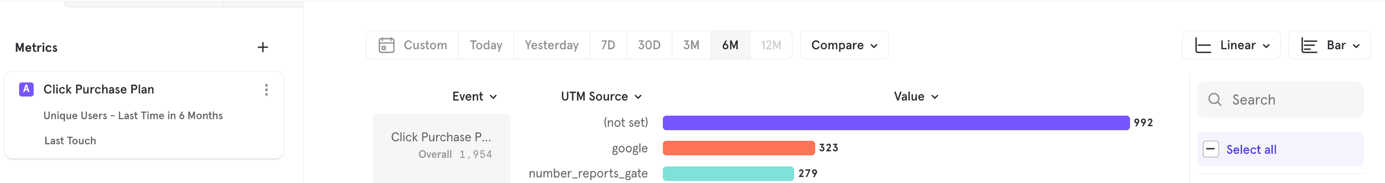 - Use-Case 2: I want to look at how many Purchases have come via Last Touch Google?